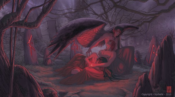 I found this picture on Deviant Art the other day, created by one of my favourite artists on the site, Vyrhelle. I love her stuff, nomnomnom. As soon as I saw it, I laughed. Then stared at it for a good ten minutes. This picture is definitely of Mercury, Frederick and Li-ling, in my head. Mercury gets to show his wings this time, not Frederick!