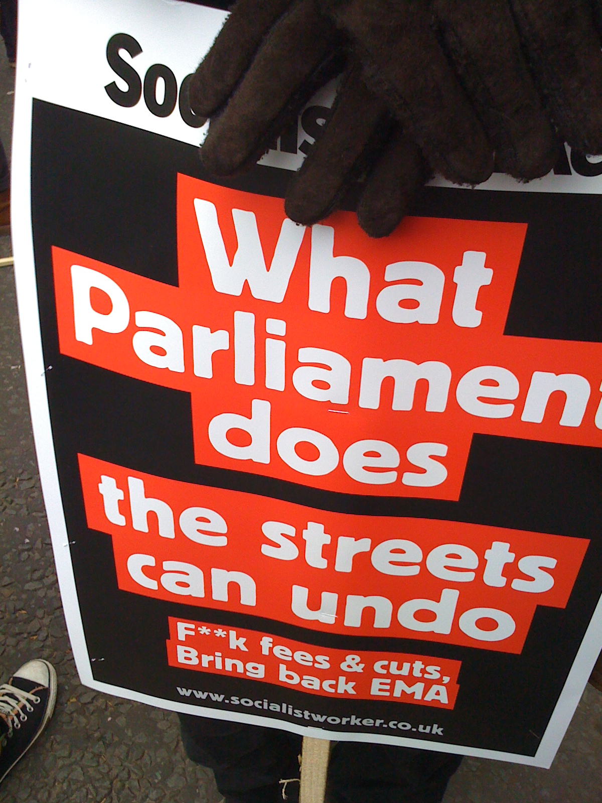 Onto the exciting bit. Last Saturday (January 29th) I made my way up to London for another protest against cuts to public services, tax rises and education. I had my own placard to hold this time – a mass produced one, but nonetheless, a placard.