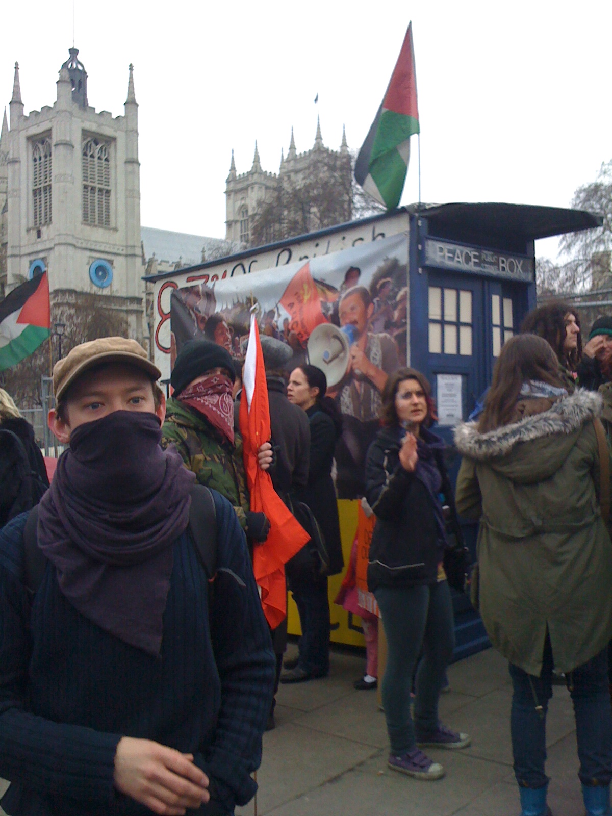 A bonfire was lit (to which I barely batted an eyelid, I’m too expectant of this now) and we milled around, chatting. After a long while, we realised only anarchists were left outside the Egyptian embassy and we decided it was time to get away before people were either arrests or kettled.