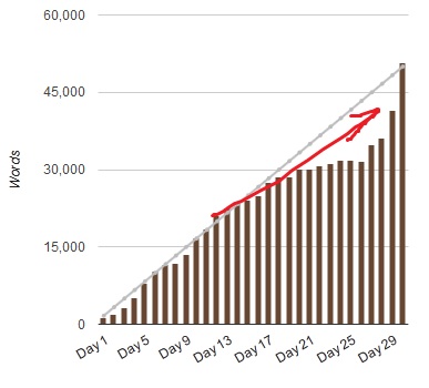 I found that the best way to keep myself going was to (a) host fantasy related sprints on [my twitter] account and (b) skip to various plot points. I didn’t linger for too long in different locations or concern myself with the passing of time in my novel. If it didn’t need to happen, if it was a minor display of character or if all necessary information had been delivered, the plot moved on.
