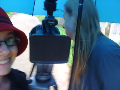 At first there were only three of us trudging out into the rain yesterday morning. Our director was AWOL, as was our second cinematographer. This left only three nuggets to figure out hi-tech cameras. Considering the three of us had never operated the things before, we didn’t do badly at all.