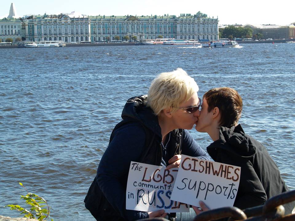 Item #16 — Russian courts have recently imposed a 100-year ban on Gay Pride parades. Let’s support our Russian LGBT Community! Take a photo of two people of the same sex kissing, while holding up a sign that says: “GISHWHES supports the LGBT Community in Russia!”