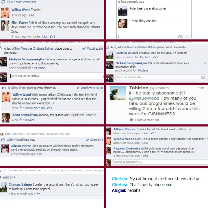 Item #63 — Edit screencaps of 10 different instances of your team using the word “abnosome” (or one of its conjugates) in online posts into one image. [ … ] This will introduce the world to this new, and important word, which of course means: “abnormal in an awesome way.”