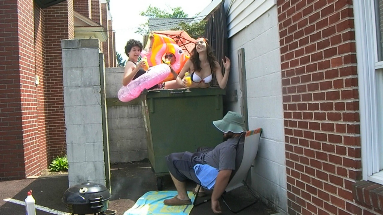 Item #41 — Have a pool party with at least three guests swimming. In this case, your “pool” shall be made from a large garbage can or dumpster. The party must also include towels, a BBQ, coctails and floatation devices. All three people must be in the “pool”. Bonus points if it’s a dumpster.