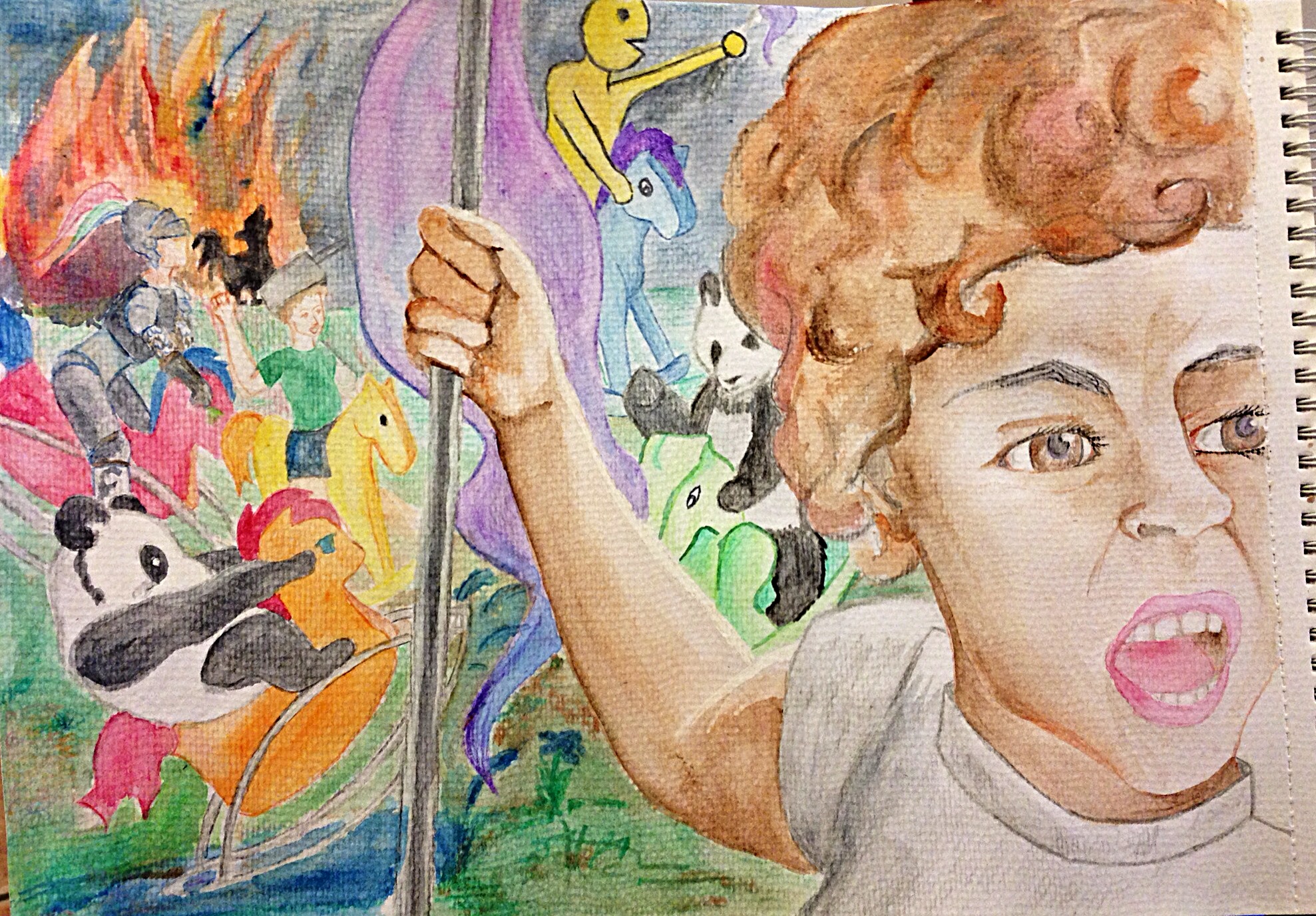 Item #150 — Let’s see a watercolour painting of one of your teammates leading the cavalry of a battle charge. The warriors, however, are not riding traditional horses, they are riding rocking horses.